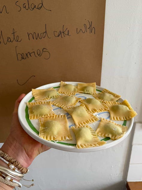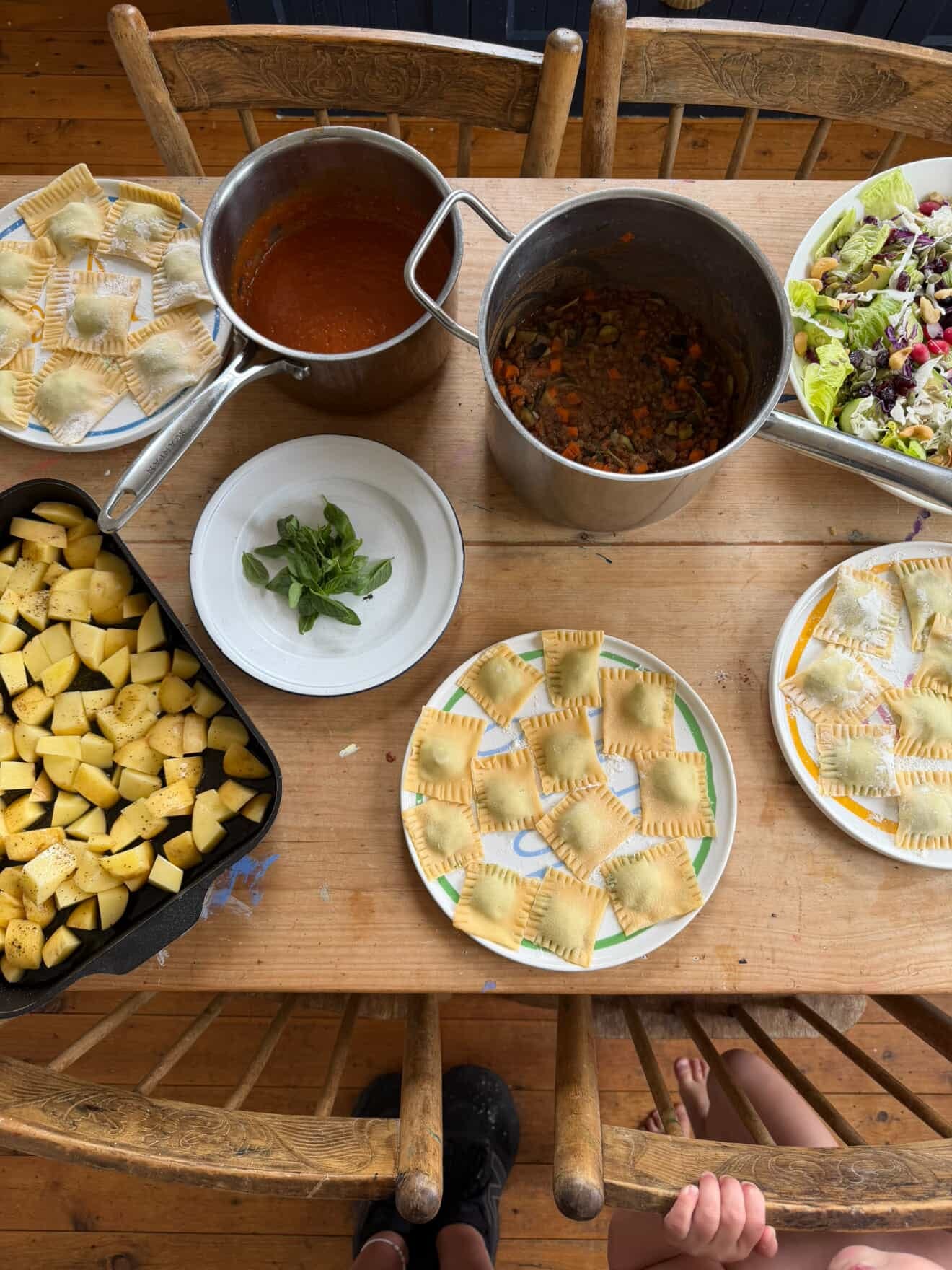 The beauty of this dish as well is that you can have the ravioli and tomato sauce prepared earlier, simply warming through the sauce and cooking the pasta when your guests arrive. It makes for a fun conversation starter - standing around the kitchen table having a drink as you work away.