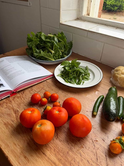 Special mention must go to the tomatoes, basil, spinach and eggs - that have all gone in to this dish. All homegrown. I feel like an Italian nonna.